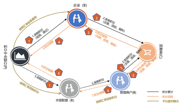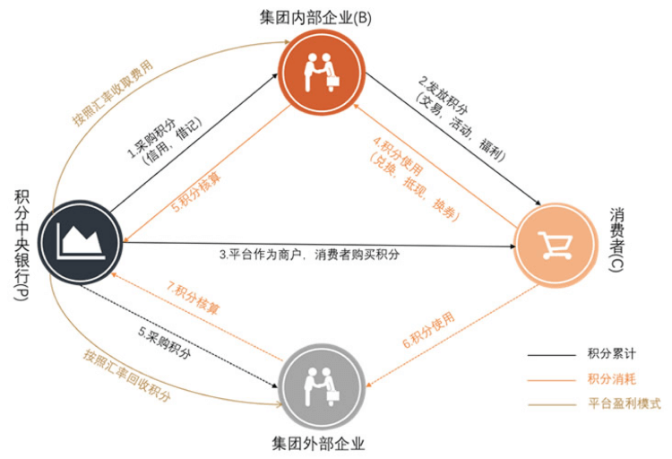 积分云:打造多业态积分通存通兑服务体系。多业态企业进驻积分银行统一管理平台,企业通过平台给用户发放积分;用户通过兑换多业态的积分权益消耗积分,从而激活用户活跃度,提高用户体验;最后,企业通过平台处理相互之间积分成本的财务清算。
