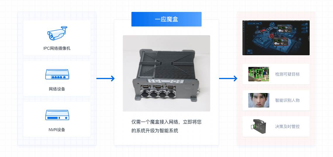 - 内置多种算法模型识别人、车、物,识别迅速,准确度高